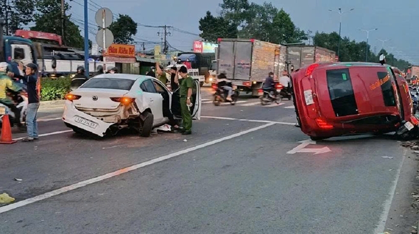 Theo các nhân chứng, vào khoảng 17h00', một chiếc ôtô màu đỏ đang di chuyển trên tuyến đường này bất ngờ tăng tốc khi đến gần ngã tư. Tài xế không kiểm soát được tốc độ, khiến xe lao thẳng vào nhóm xe máy đang dừng chờ đèn đỏ, làm nhiều người và phương tiện bị húc văng. Sau cú va chạm ban đầu, xe tiếp tục đâm vào đuôi một ôtô màu trắng phía trước rồi va thêm vào một số xe máy khác trước khi bị lật ngang giữa đường.