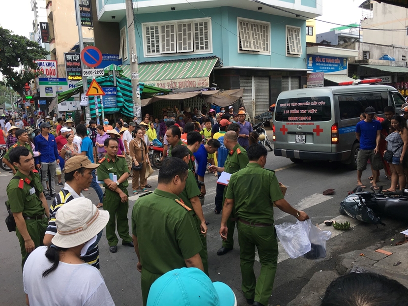 Cảnh sát sau đó có mặt, phong tỏa hiện trường, khám nghiệm điều tra. Theo ghi nhận, thi thể cô gái nằm gần chiếc xe máy, phần đầu gần với mép nắp cống bằng sắt.