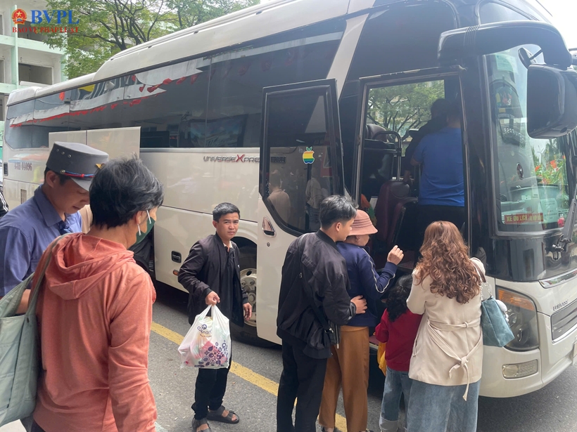 | Hành khách được trung chuyển bằng ô tô giữa các ga do tuyến đường sắt qua đèo Hải Vân tạm thời gián đoạn. |