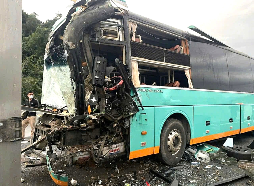 Hậu quả, tài xế xe khách 50H-302.62 Phạm Tuấn Đạt bị thương nặng (đứt lìa 2 chân), bốn xe ô tô hư hỏng nặng.