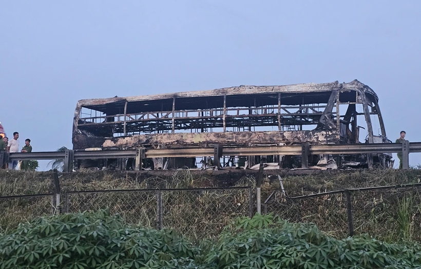 Bước đầu, cơ quan chức năng xác định chiếc xe bị cháy trơ khung và thiệt hại một số hành lý của khách. Riêng 10 hành khách trên xe thoát ra ngoài an toàn.