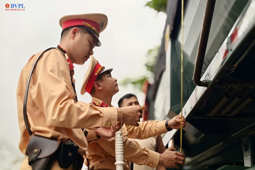 | CSGT kiểm tra xe có cơi nới hay không. |