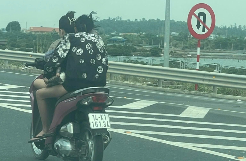 Trước đó, sáng cùng ngày, mạng xã hội đăng tải đoạn clip ghi lại cảnh một phụ nữ trẻ điều khiển xe máy mang biển kiểm soát 14K1-161.xx, phía sau chở theo một cô gái khác, di chuyển với tốc độ cao trên đường cao tốc. Đáng chú ý, người điều khiển xe máy còn đi ngược chiều đường, tiềm ẩn nguy cơ xảy ra tai nạn giao thông.