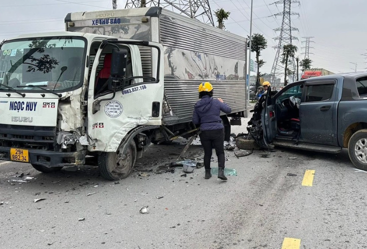 Va chạm liên hoàn tại phường Hoàng Mai, ô tô bán tải bị biến dạng