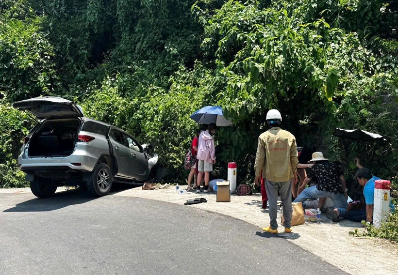 Xe du lịch mất lái, đâm vào sườn núi khi đổ đèo Hòn Bà, 6 người thương vong