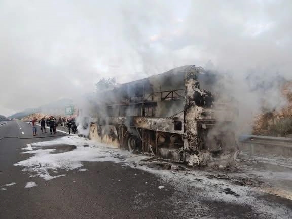 “Xe khách đã cháy rụi hoàn toàn.”, nguồn tin cho biết, vụ cháy không gây thiệt hại về người.
