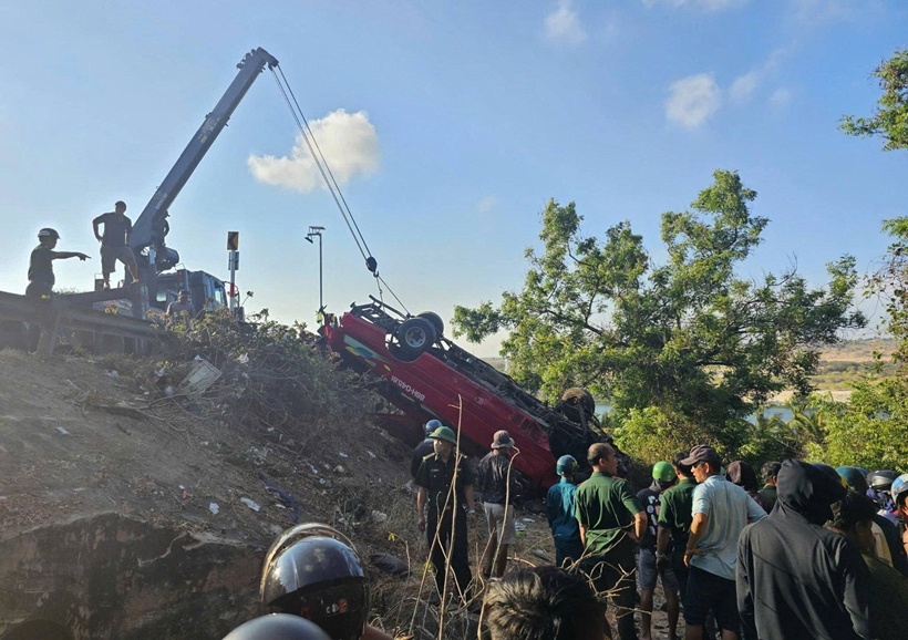 | Hiện trường xe khách lao xuống vực. |