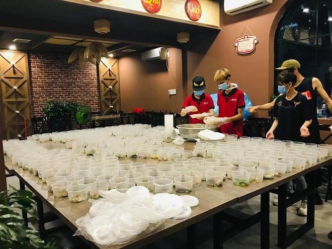 Một nhóm thiện nguyện khác nấu hàng trăm suất ăn khuya tặng các nhân viên Bệnh viện Đà Nẵng đang phải cách ly tại các khách sạn, các lực lượng canh gác tại chốt kiểm dịch. (Ảnh: Zing News).