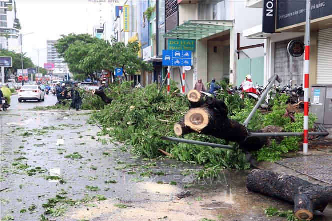 Cây xanh trên đường Nguyễn Văn Linh (Đà Nẵng) bị gió quật bật gốc, gãy đổ đã được các đơn vị chức năng cắt dọn, đảm bảo lưu thông.