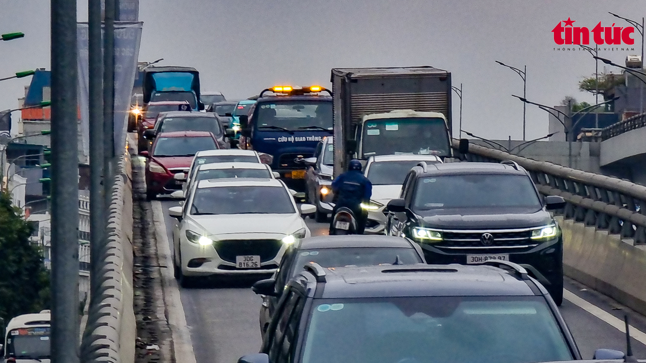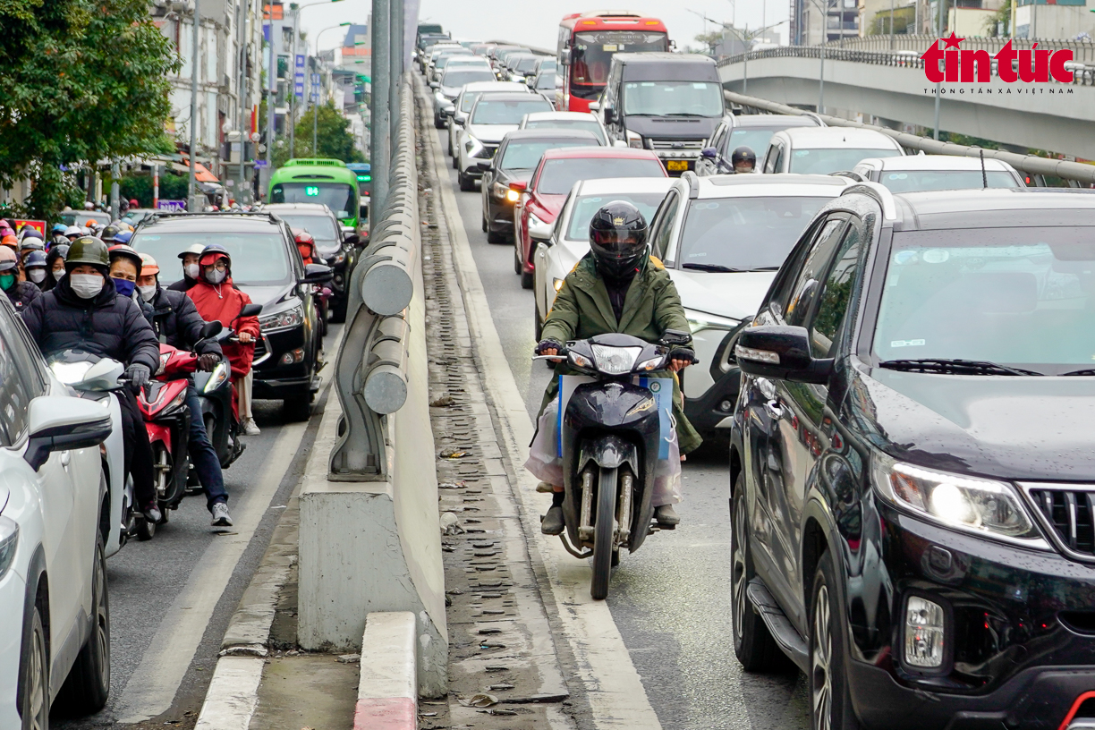 Vào khung giờ cao điểm từ 6 - 8 giờ hàng ngày, vẫn còn một số cá nhân cố tình đi xe máy lên vành đai 2 (đoạn Trường Chinh - Ngã Tư Sở, Hà Nội).