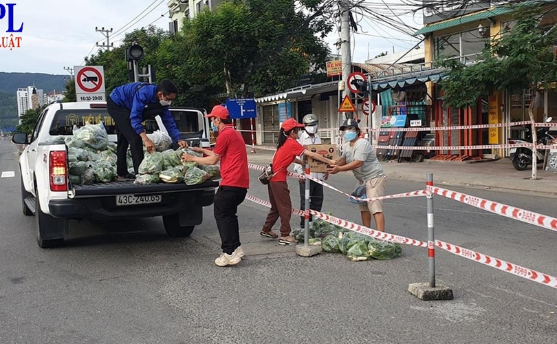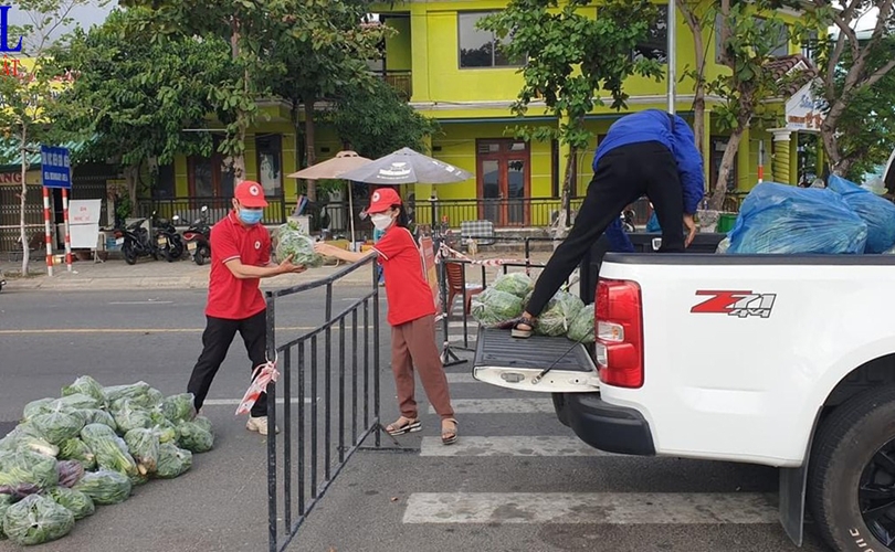 Ngoài nấu suất ăn miễn phí, bếp cơm 0 đồng còn nhận rau xanh và các loại củ, quả chuyển về để tặng cho người dân gặp khó khăn 4 phường của quận Sơn Trà đang cách ly y tế.(ảnh:LT)