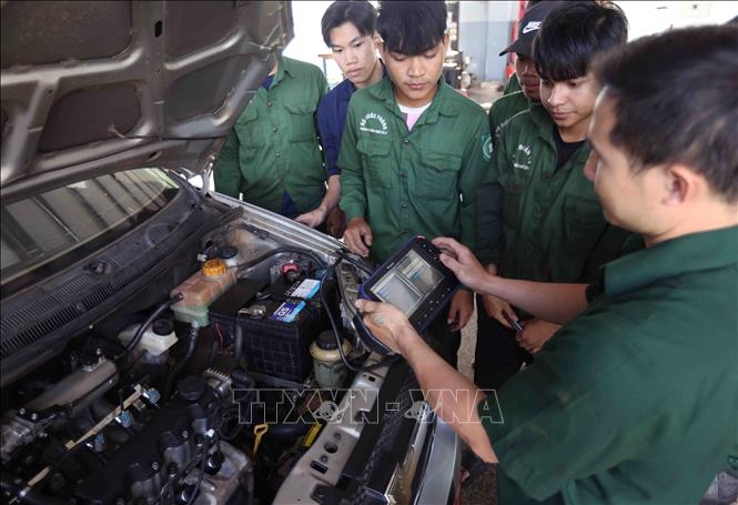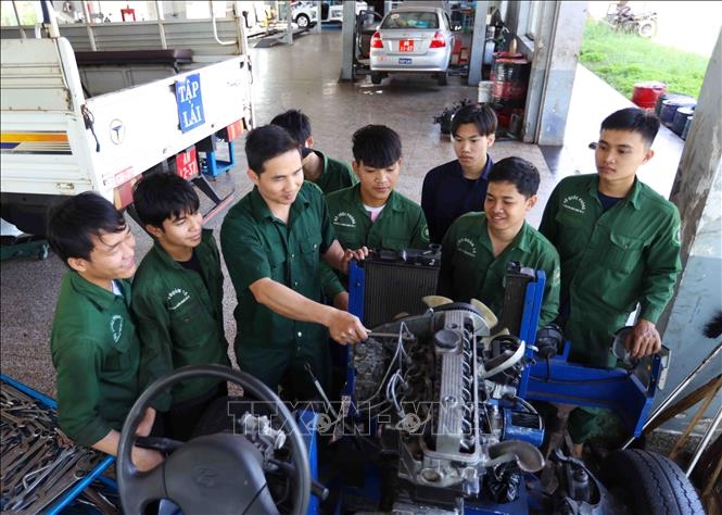 Lớp sửa chữa ô tô của Trường Trung cấp nghề số 21 (Binh đoàn 15) ở thành phố Pleiku, tỉnh Gia Lai.
