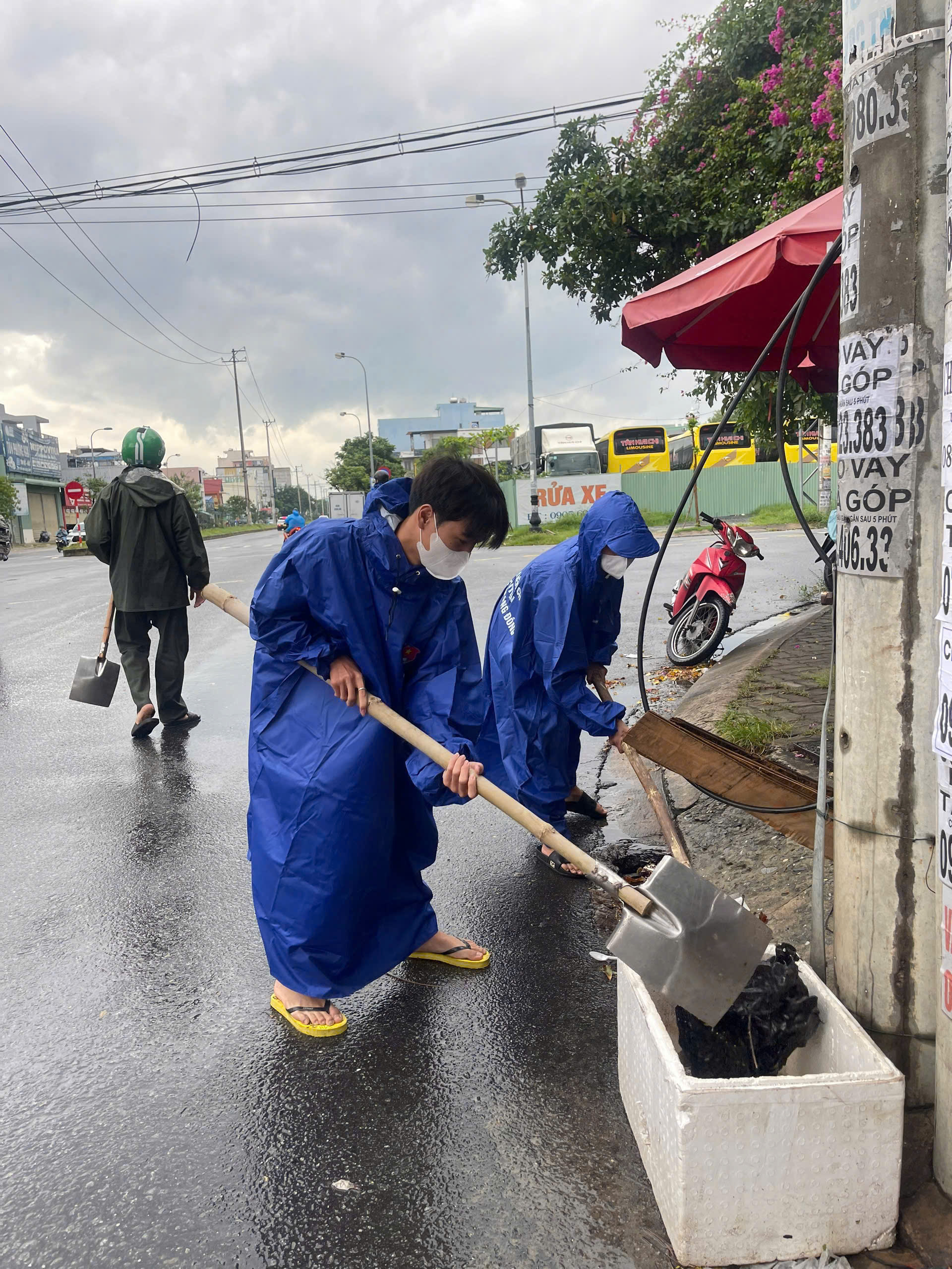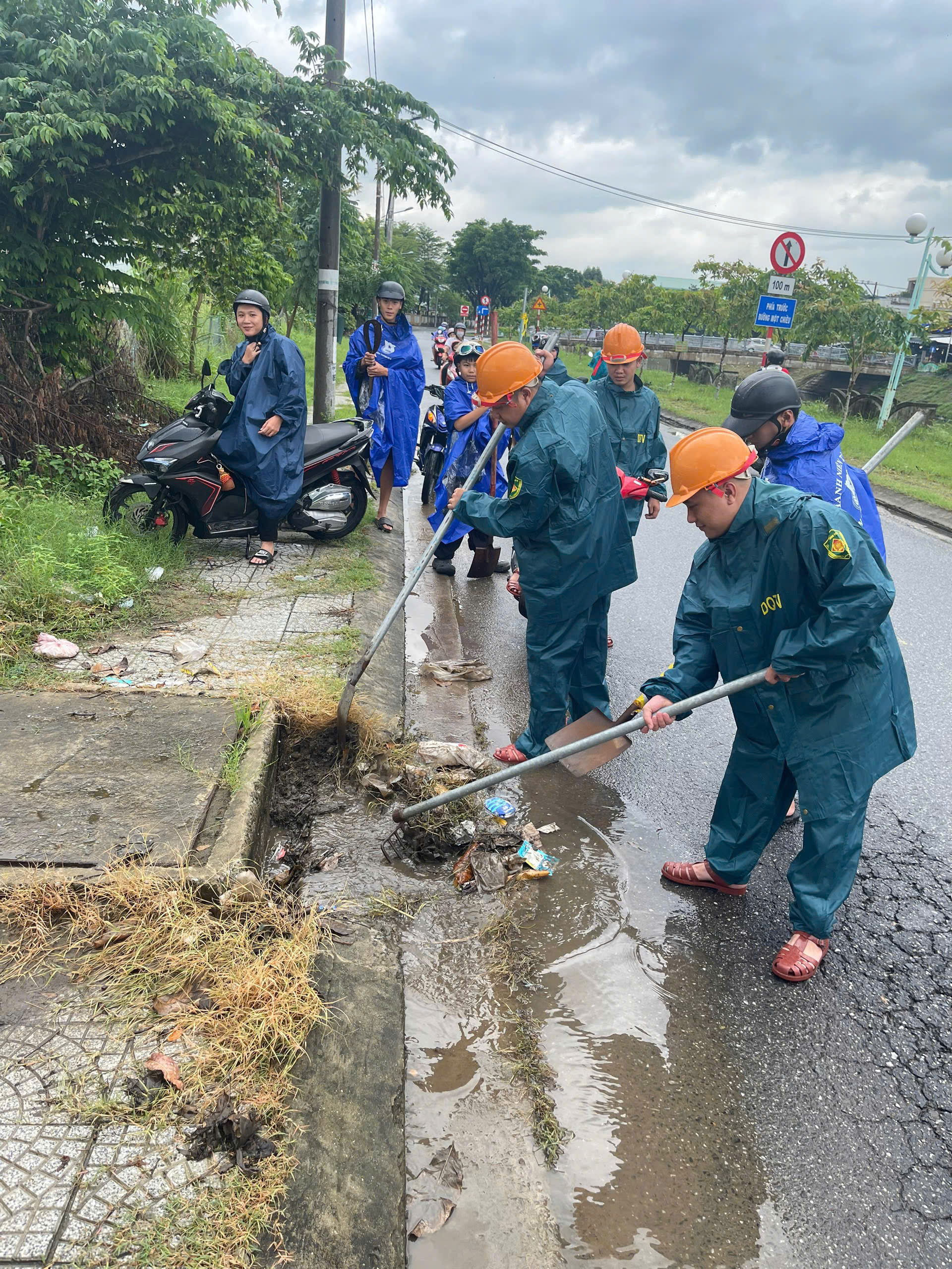Trên địa bàn quận Liên Chiểu, lực lượng tình nguyện viên đã đội mưa khơi thông các miệng cống rãnh, các hố thu ở dọc các tuyến đường để đảm bảo không xảy ra tình trạng ngập úng cục bộ do mưa lớn.