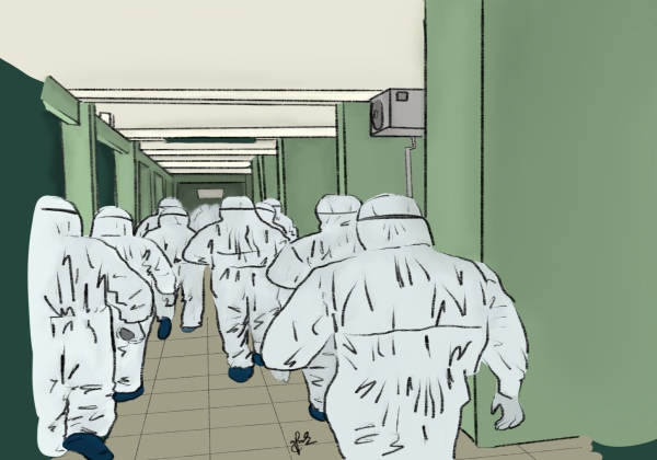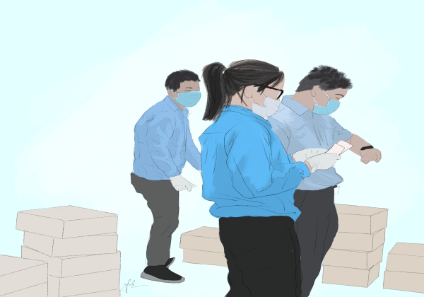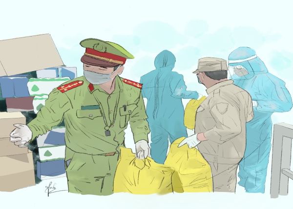 (BVPL) - Lấy cảm hứng từ hình ảnh những "người hùng" đang ngày đêm căng mình thực hiện nhiệm vụ được đăng tải trên các trang báo. Bộ tranh của Minh Anh đã khắc họa hình ảnh hình ảnh các y bác sĩ trong bộ đồ bảo hộ màu trắng đang đi thẳng vào tâm dịch, hình ảnh các y bác sĩ lạc quan, đàn hát để động viên các bệnh nhân, hình ảnh những “núi” nhu yếu phẩm do người dân tiếp tế đến các khu vực cách ly, phong tỏa, hình ảnh các y bác sĩ trong bộ đồ bảo hộ màu xanh tranh thủ chợp mắt trên ghế đá,…