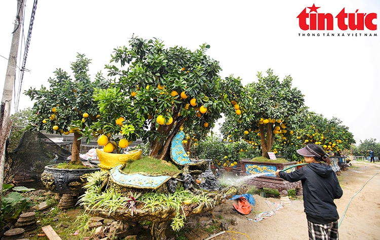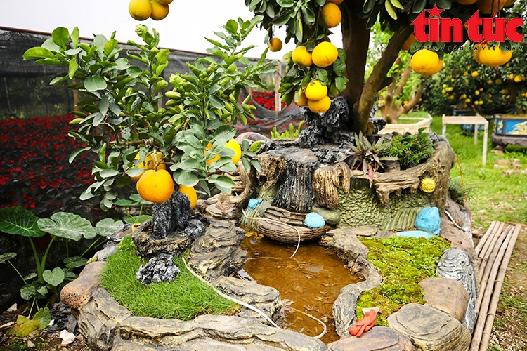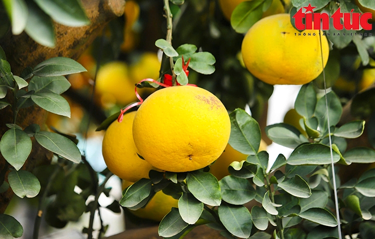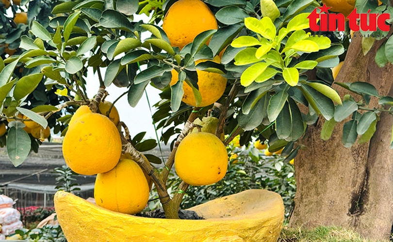 Những chậu bưởi được các nhà vườn làm thủ công, sau đó tiến hành trồng cây và chăm sóc để cây khỏe, ra trái chín đúng dịp Tết.