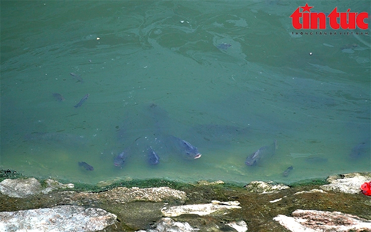 Nhiều con cá ngoi lên mặt nước thở yếu ớt.
