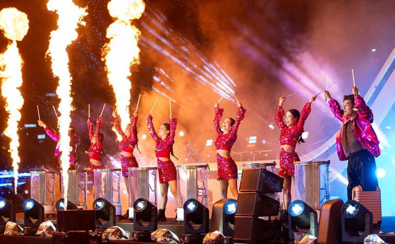 Mở đầu rộn ràng, những chùm pháo đa sắc bùng nổ theo nhịp nhạc sôi động, vẽ lên bầu trời những gam màu sống động và hiện đại, khắc họa một Đà Nẵng trẻ trung, bứt phá không ngừng.