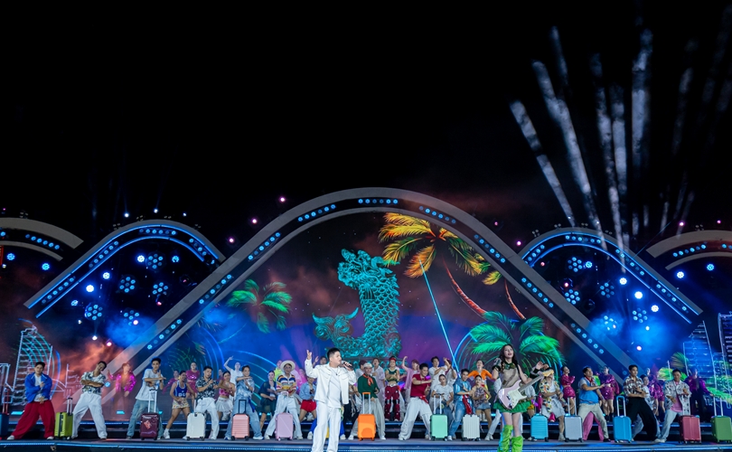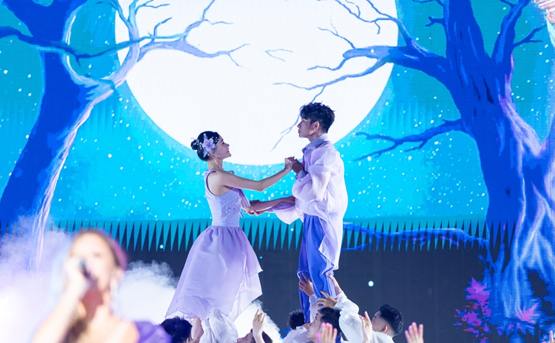 Và khi nhạc chuyển sang tiết tấu nhẹ nhàng, giàu chất thơ, pháo hoa bung nở theo hình quạt, ánh vàng kim và cam rực như phản chiếu ánh trăng trên lớp vảy Luna, cô nàng rồng lửa.