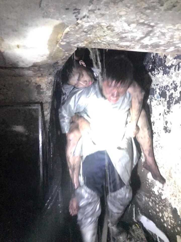 Lực lượng cứu nạn đã cõng nạn nhân nhanh chóng đưa xuống xe ô tô chuyển đến bệnh viện Hà Thành cấp cứu. (Nguồn: Công an TP Hà Nội)