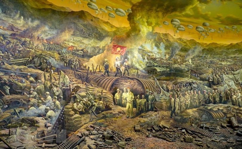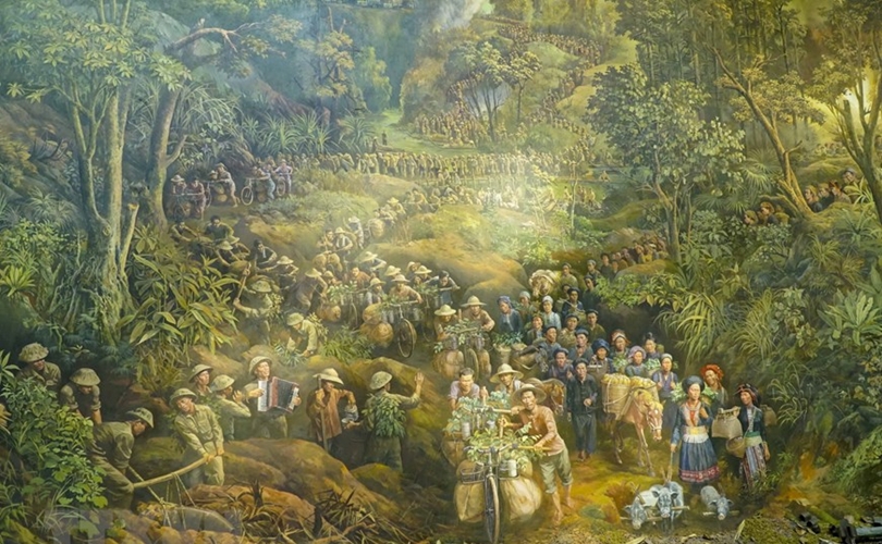 Bức tranh được chia làm 4 trường đoạn: Toàn dân ra trận, Khúc dạo đầu hùng tráng, Cuộc đối đầu lịch sử và chiến thắng. (Ảnh: Xuân Tư/TTXVN)