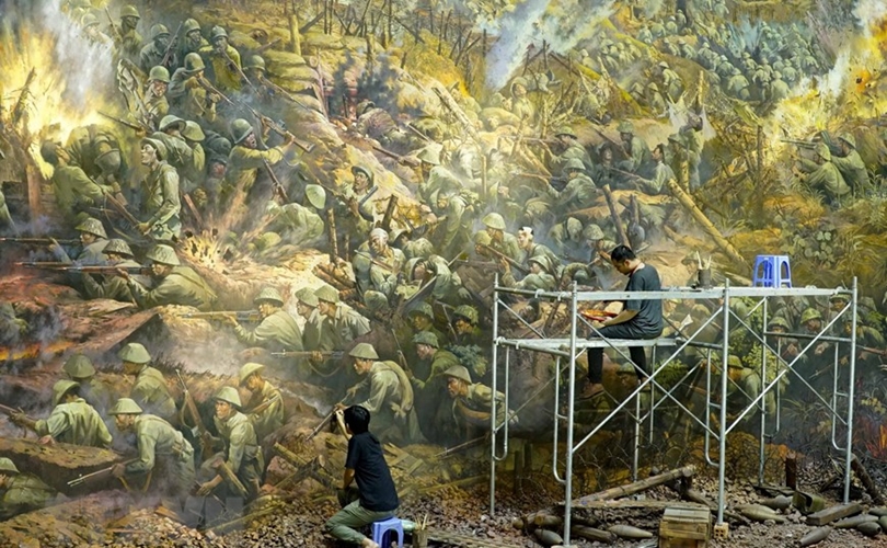 Dự kiến bức tranh sẽ được ra mắt công chúng vào ngày 7/5, kỷ niệm 67 năm Chiến thắng Điện Biên Phủ, tại Bảo tàng Chiến thắng Điện Biên Phủ, 279, phường Mường Thanh, thành phố Điện Biên Phủ, Điện Biên. (Ảnh: Xuân Tư/TTXVN)