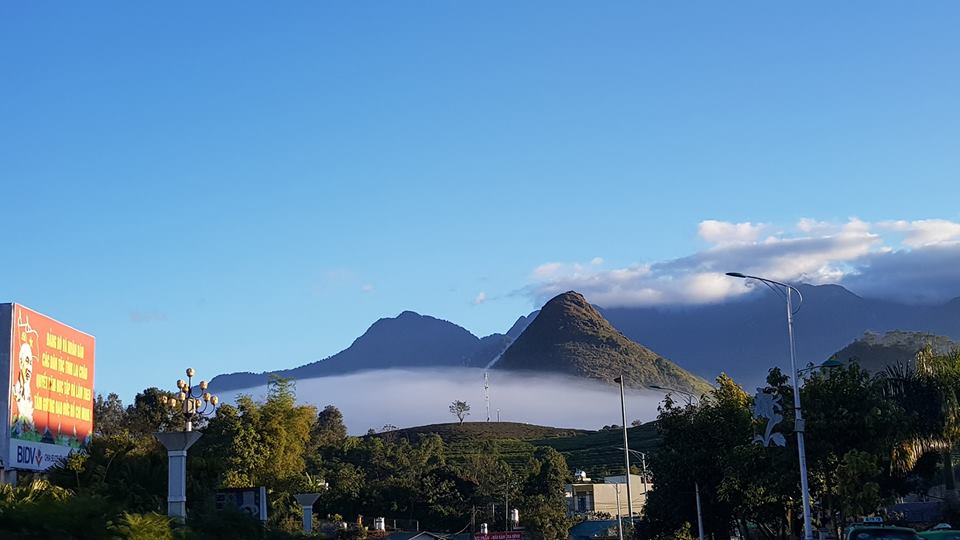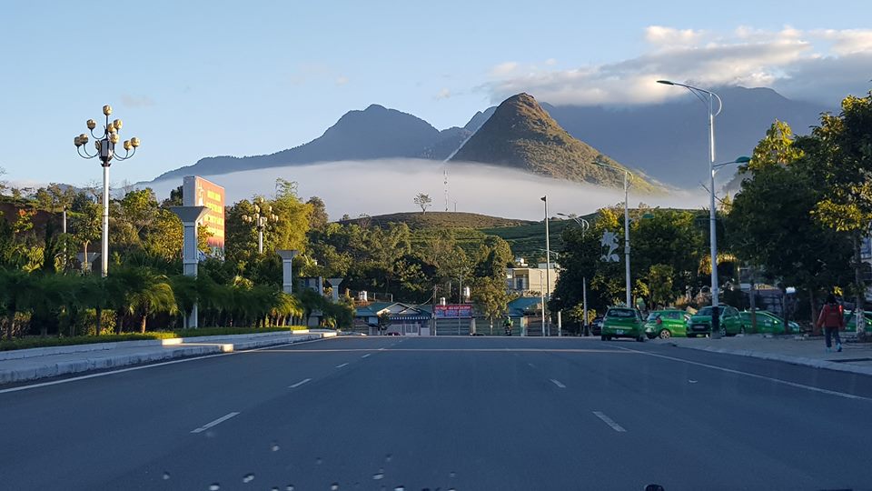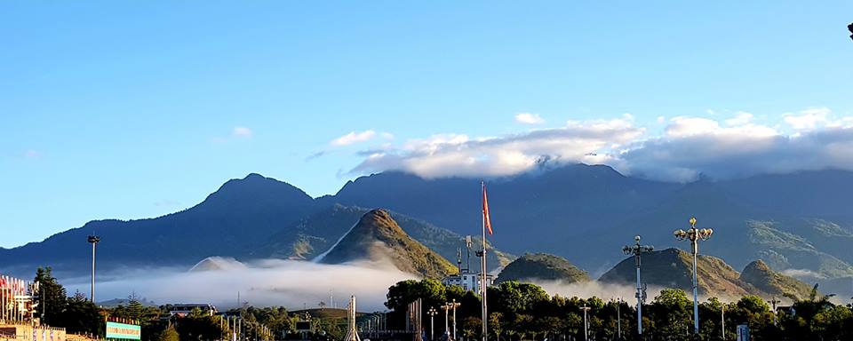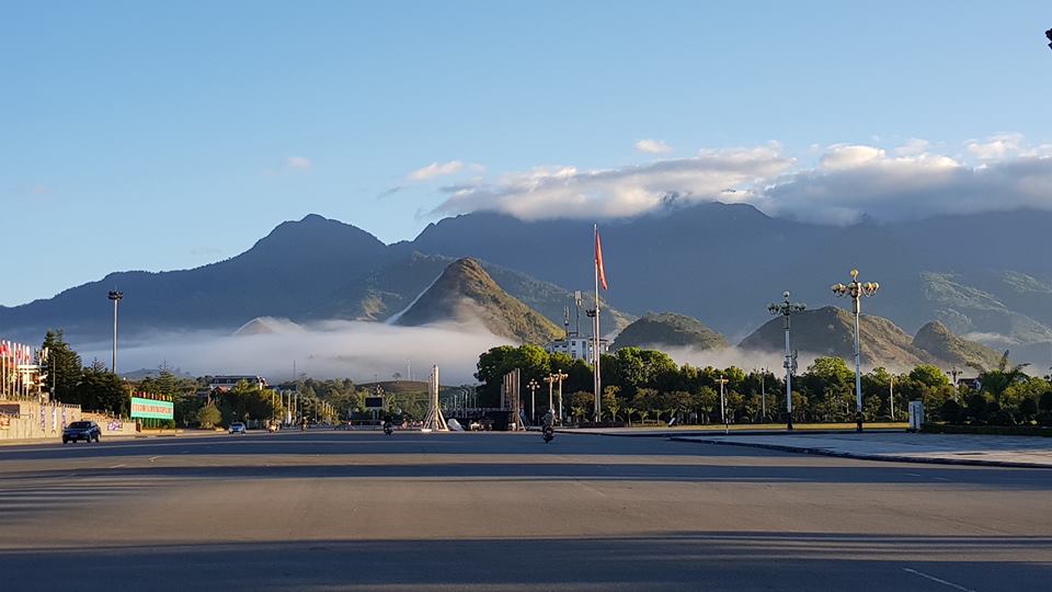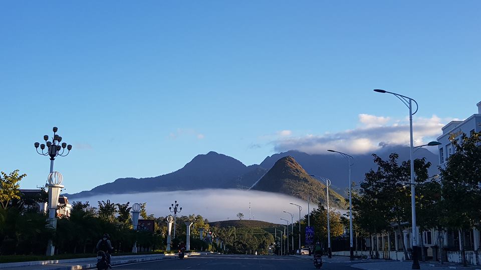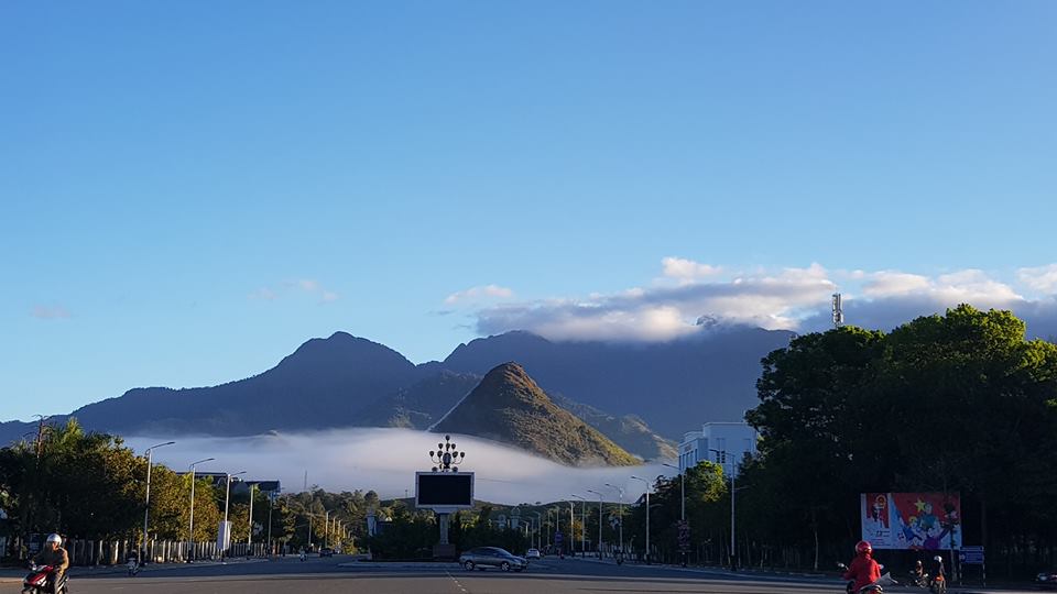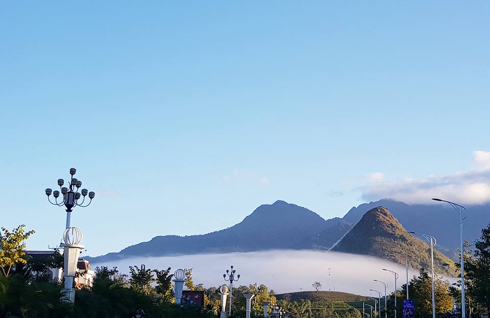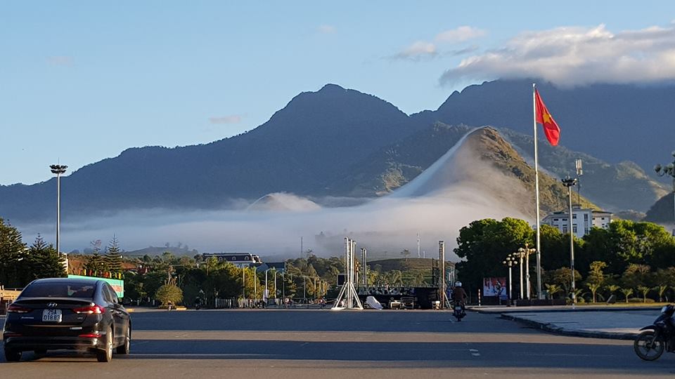 Cảnh "núi ôm mây, mây ấp núi" do tác giả Nguyễn Thành Chung chụp buổi sáng ở TP Lai Châu: