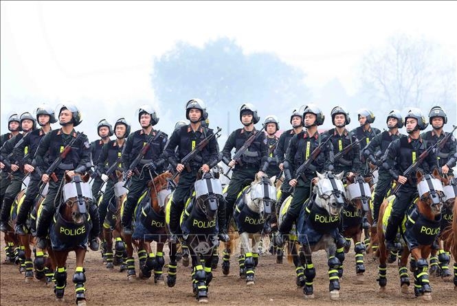 Cán bộ, chiến sĩ Đoàn CSCĐ Kỵ binh tập luyện chuẩn bị cho lễ kỷ niệm 50 năm ngày truyền thống lực lượng Cảnh sát cơ động (15/4/1974 - 15/4/2024).