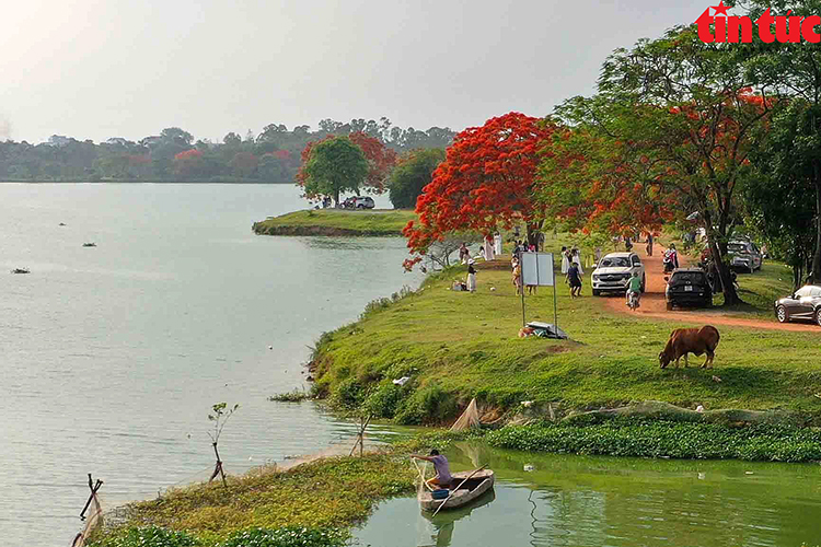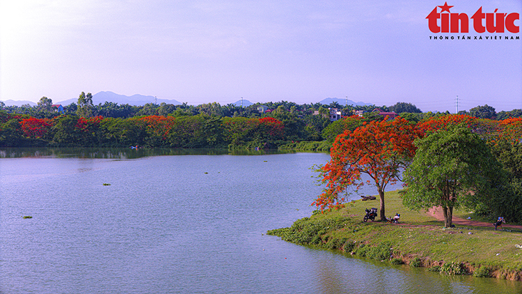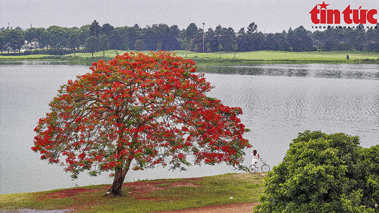 Những ngày cuối tuần, nhiều chị em phụ nữ, nhiếp ảnh gia đã bị "hút hồn" bởi vẻ đẹp mê mẩn của cây phượng vĩ tại thôn Đầm, xã Vân Nội, huyện Đông Anh, Hà Nội.