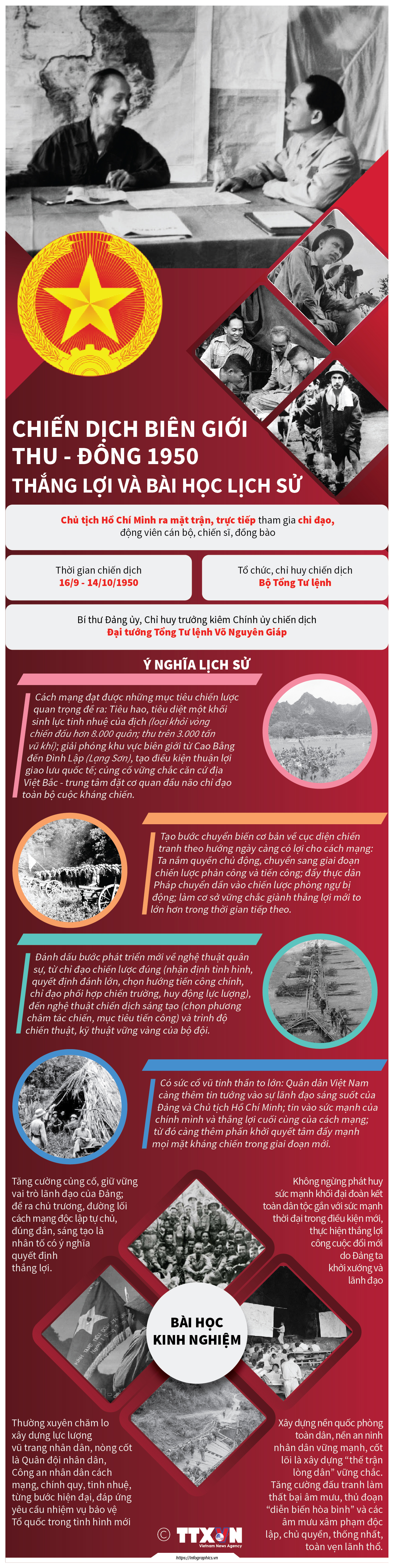 Chiến dịch Biên giới Thu - Đông 1950 là chiến dịch tiến công quy mô lớn đầu tiên của Quân đội nhân dân Việt Nam vào hệ thống phòng ngự của quân Pháp trên tuyến Cao Bằng - Lạng Sơn. Trải qua 29 ngày đêm chiến đấu quyết liệt, anh dũng và mưu trí (từ 16/9 đến 14/10/1950), chiến dịch đạt thắng lợi vang dội, mở ra bước ngoặt mới cho cuộc kháng chiến của nhân dân Việt Nam chống thực dân Pháp xâm lược (1945-1954); đồng thời để lại nhiều bài học kinh nghiệm quý báu cho cách mạng.