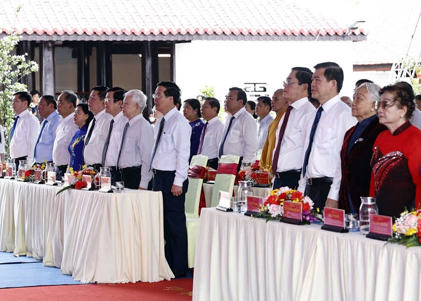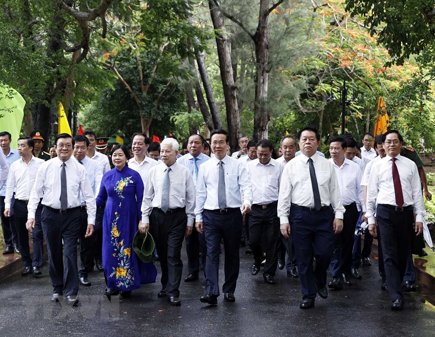 Chủ tịch nước Võ Văn Thưởng và các đại biểu dự Lễ giỗ các anh hùng liệt sỹ, chiến sỹ cách mạng, đồng bào yêu nước hy sinh tại Côn Đảo. (Ảnh: Thống Nhất/TTXVN)