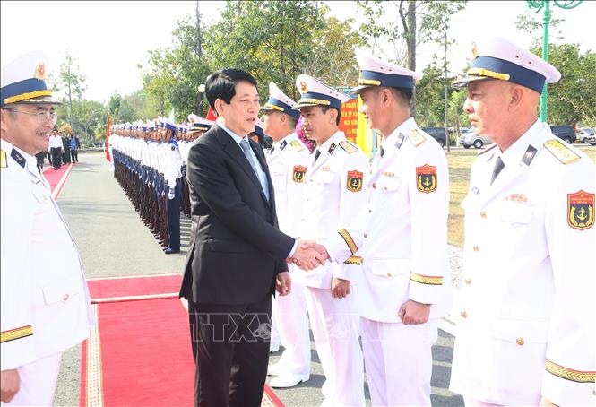 Sáng 14/1/2025, Chủ tịch nước Lương Cường và đoàn công tác Trung ương đến thăm, chúc Tết tại Vùng 5 Hải quân và các đơn vị lực lượng vũ trang làm nhiệm vụ trên địa bàn thành phố Phú Quốc, tỉnh Kiên Giang.