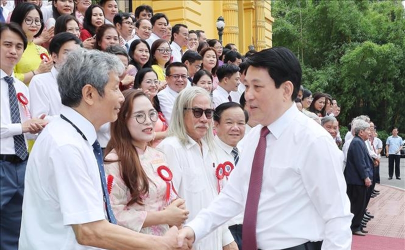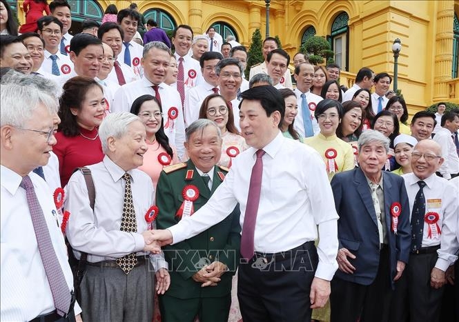 Chủ tịch nước Lương Cường gặp mặt các nhà báo tiêu biểu toàn quốc.