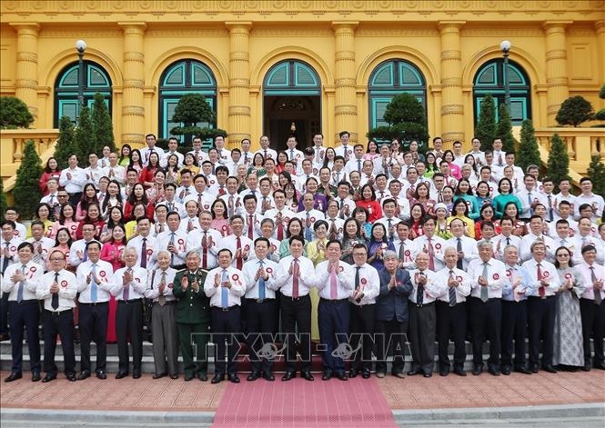 Chủ tịch nước Lương Cường với các nhà báo tiêu biểu toàn quốc.