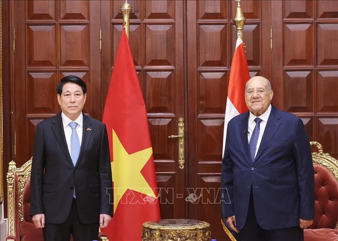 Trong chương trình chuyến thăm cấp Nhà nước tới Ai Cập, sáng 6/8/2025, giờ địa phương (chiều cùng ngày, giờ Hà Nội), tại trụ sở Thượng viện thủ đô Cairo, Chủ tịch nước Lương Cường hội kiến Chủ tịch Thượng viện Ai Cập Abdel-Wahab Abdel-Razek.