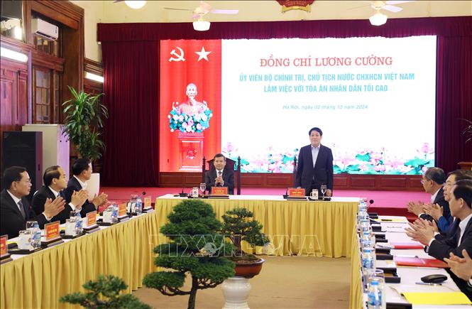 Sáng 2/12/2024, tại Hà Nội, Chủ tịch nước Lương Cường làm việc với Tòa án Nhân dân tối cao.