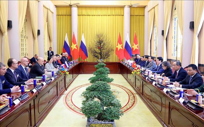 Sáng 15/1/2025, tại Phủ Chủ tịch, Chủ tịch nước Lương Cường tiếp Thủ tướng Liên bang Nga Mikhail Mishustin nhân dịp sang thăm chính thức Việt Nam.