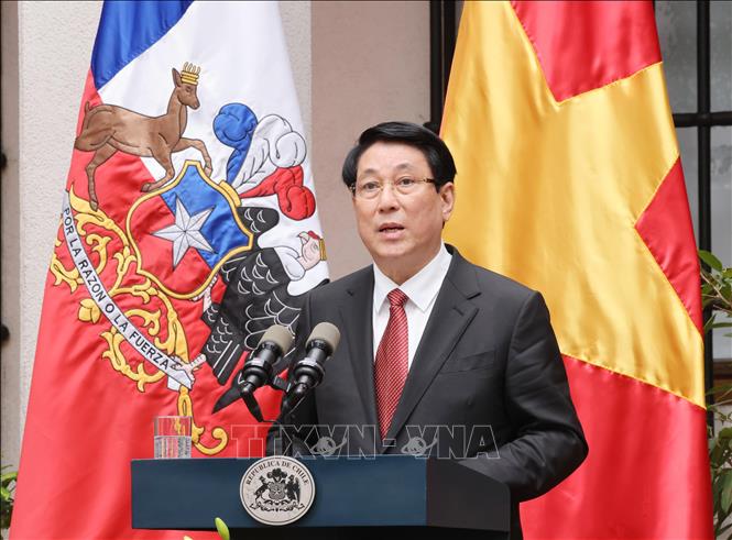 Ngay sau hội đàm, chiều 11/11/2024 (giờ địa phương), tại thủ đô Santiago de Chile, Chủ tịch nước Lương Cường và Tổng thống Chile Gabriel Boric Font chứng kiến lễ ký và trao các văn kiện hợp tác giữa hai nước; gặp gỡ với báo chí.