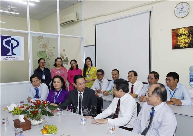 Nhân kỷ niệm Ngày Nhà giáo Việt Nam (20/11), sáng 13/11/2023, Chủ tịch nước Võ Văn Thưởng đến thăm và gặp mặt các thế hệ thầy cô giáo, sinh viên Trường Đại học Khoa học Xã hội và Nhân văn thuộc Đại học Quốc gia TP Hồ Chí Minh.