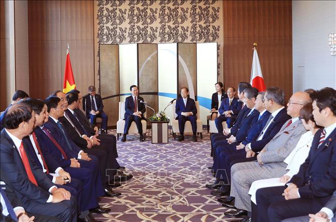Trong chương trình thăm chính thức Nhật Bản, ngày 27/11/2023, tại Thủ đô Tokyo, Chủ tịch nước Võ Văn Thưởng tiếp Ban lãnh đạo Liên minh Nghị sỹ Hữu nghị Nhật Bản – Việt Nam do ông Nikai Toshihiro, Chủ tịch Liên minh dẫn đầu đến chào xã giao.