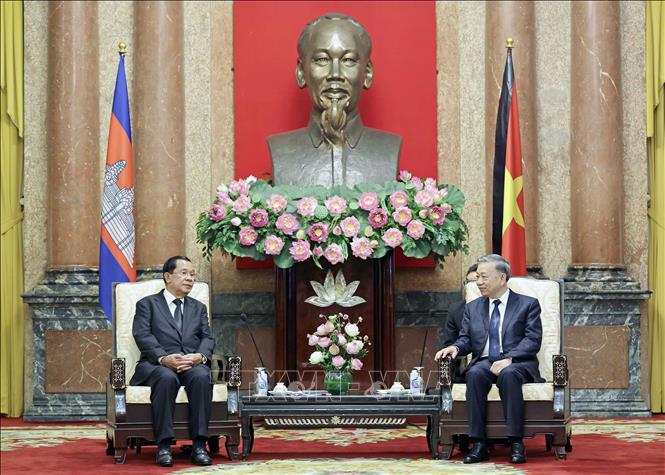 Sáng 25/7/2024, tại Phủ Chủ tịch, Chủ tịch nước Tô Lâm tiếp Chủ tịch Đảng Nhân dân Campuchia (CPP), Chủ tịch Thượng viện Vương quốc Campuchia Samdech Hun Sen sang chia buồn với Đảng, Nhà nước, Nhân dân Việt Nam và dự Quốc tang Tổng Bí thư Nguyễn Phú Trọng.