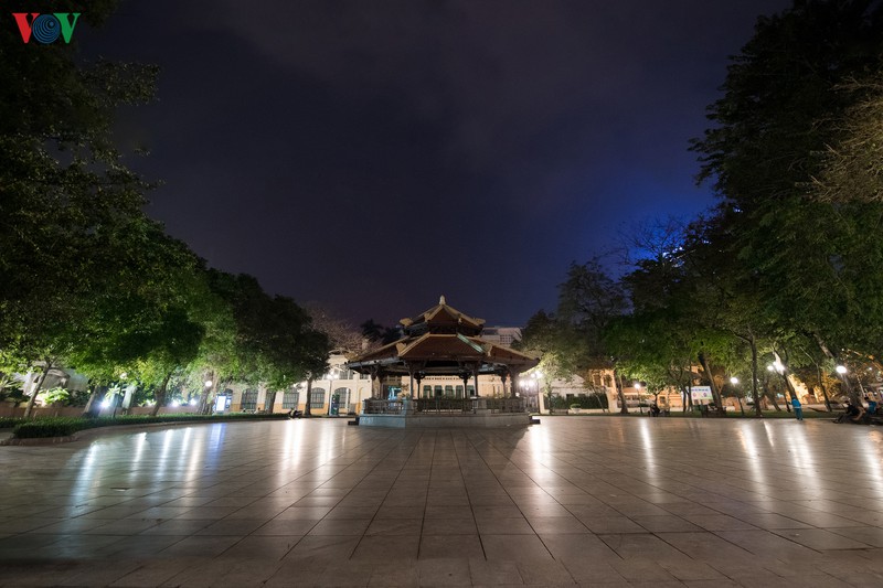 Quảng trường Ba Đình là địa điểm tập thể dục của nhiều người dân vào mỗi tối nhưng giờ đây cũng đã tắt bớt đèn và cấm người ra vào.