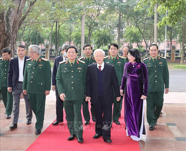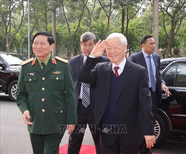Tổng Bí thư, Chủ tịch nước Nguyễn Phú Trọng, Bí thư Quân ủy Trung ương đến dự Hội nghị.