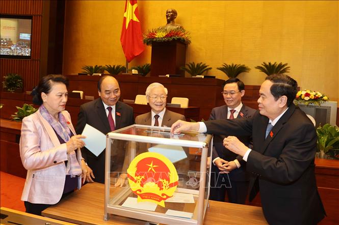 Tổng Bí thư, Chủ tịch nước Nguyễn Phú Trọng và các đại biểu bỏ phiếu.