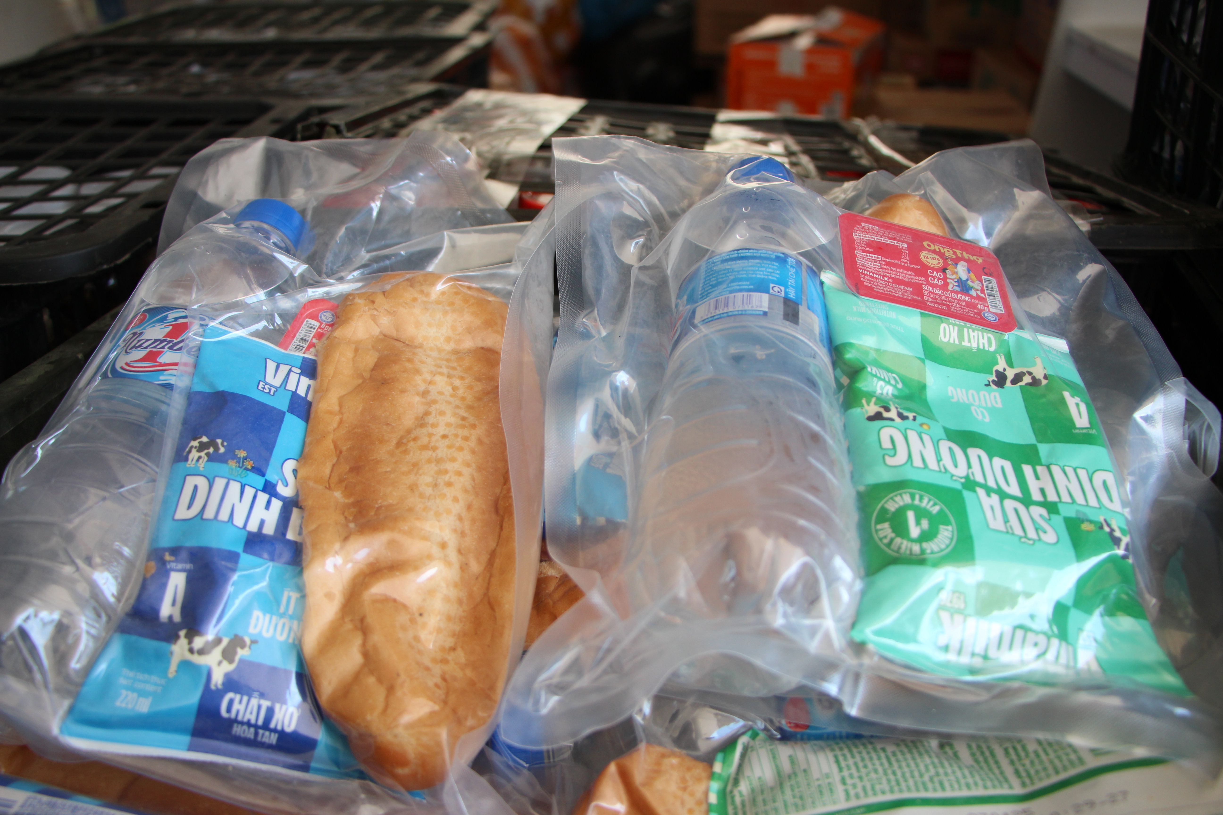 Đồ ăn nhanh đã phân chia sẵn (nước, bánh mỳ, sữa đặc, xúc xích, sữa tươi)...