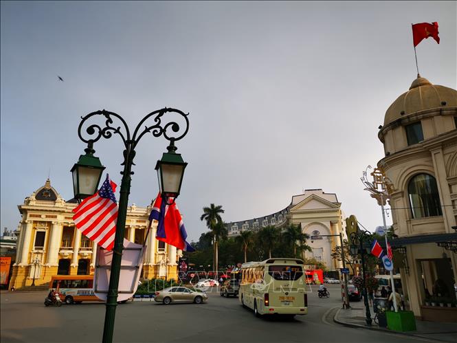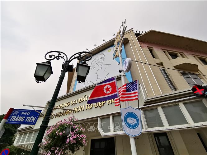 Những ngày qua, trên nhiều tuyến phố chính của Thủ đô Hà Nội đã trang hoàng rực rỡ cờ hoa, panô, cây cảnh... để chào mừng Hội nghị thượng đỉnh Hoa Kỳ-Triều Tiên lần thứ hai.