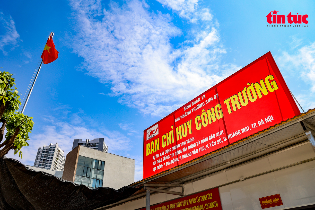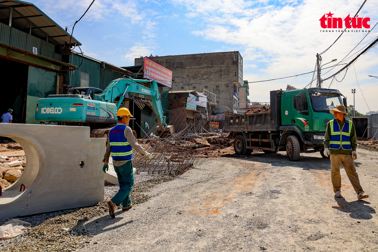 Tận dụng thời tiết thuận lợi và một số điểm thi công có mặt bằng sạch, UBND quận Hoàng Mai (Hà Nội) chỉ đạo các nhà thầu đẩy nhanh tiến độ, phấn đấu tháng 6/2026 hoàn thành dự án mở rộng đường Tam Trinh.
