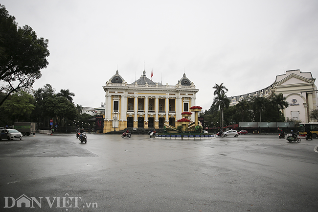 Theo ghi nhận vào sáng ngày 19/3, thời tiết tại Thủ đô đã ngớt mưa so với những ngày trước. Tuy nhiên, khắp các con phố đều vắng vẻ, đa số người dân chấp hành nghiêm túc các khuyến cáo của chính quyền.