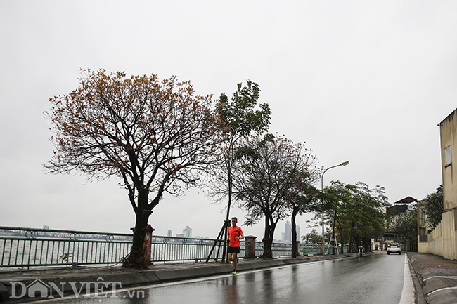 Ở một số tuyến phố ven Hồ Tây, do dịch bệnh và thời tiết mưa rét, hầu hết người dân đều hạn chế ra đường. Tuy nhiên, vẫn có số ít người nước ngoài ra đường tập thể thao và thờ ơ với việc đeo khẩu trang.
