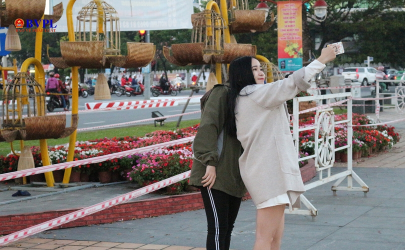Mặc dù đường hoa đang trong giai đoạn hoàn thành nhưng vẫn thu hút nhiều bạn trẻ tới xem, chụp hình.
