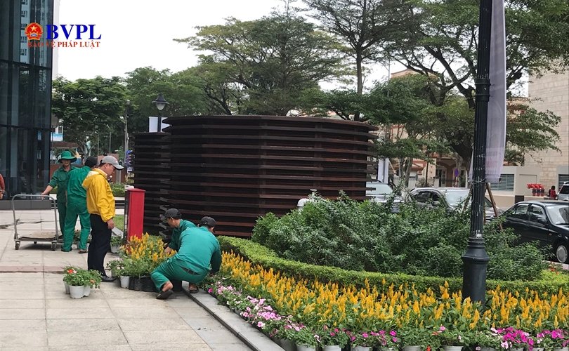 Chỉ còn 10 ngày nữa là đến Tết cổ truyền dân tộc, những ngày này, nhiều tuyến đường khu vực trung tâm Đà Nẵng, công nhân đang khẩn trương, trang hoàng đường phố, các nơi công cộng thêm mới mẻ và ngập màu sắc xuân để chuẩn bị đón Tết.